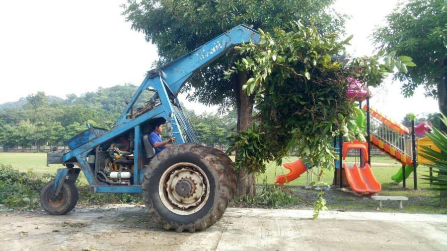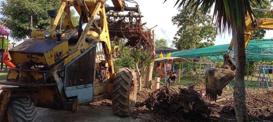 นำรถคีบ มาช่วยปรับภูมิทัศน์