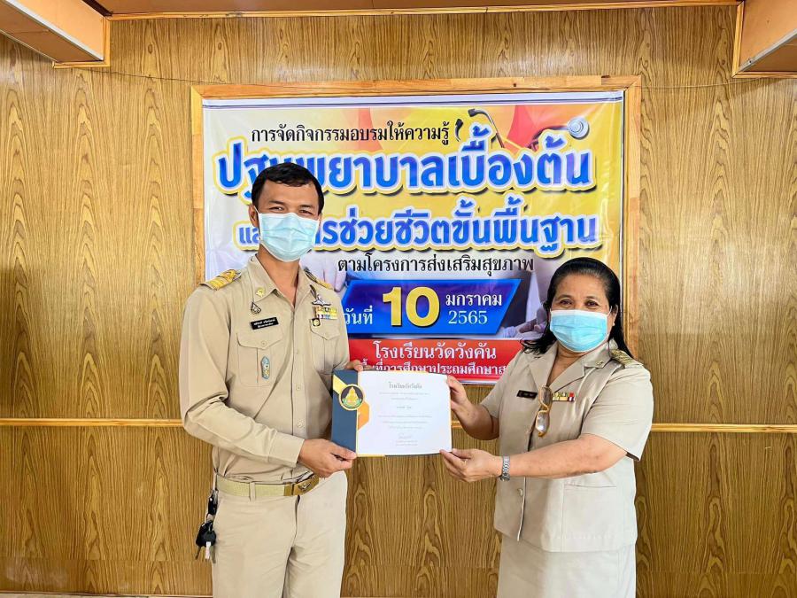 วันที่ 10 มกราคม 2565 นายณธัชพงศ์ ตรัยคนันธรณ์ ผู้อำนวยการโรงเรียนวัดวังคันเปิดการอบรมครูและบุคลากรทางการศึกษา ในหัวข้อ ปฐมพยาบาลเบื้องต้นและการช่วยชีวิตขั้นพื้นฐาน ตามโครงการสุขภาพอนามัยในโรงเรียน ของครูอัจฉรา อิ่มพันแบน โดยมีคุณหมอสุนิดา ศรีบุญเพ็ง เป็นวิทยากรการอบรมในครั้งนี้ ทางโรงเรียนวัดวังคัน ขอขอบคุณ คุณหมอสุนิดา ศรีบุญเพ็ง จากโรงพยาบาลส่งเสริมสุขภาพประจำตำบลบ้านทับผึ้งน้อย ที่มาเป็นวิทยากร คณะครูและบุคลากรทุกท่าน สามารถนำความรู้ที่ได้ไปปรับประยุกต์ใช้และช่วยเหลือผู้อื่นเมื่อเกิดเหตุฉุกเฉินได้ S:0