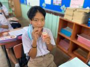 คุณเผ่าเทพ โชตินุชิต ที่มอบเงินจำนวน 6,000 บาทสำหรับเลี้ยงไอศกรีมเด็กๆ โรงเรียนวัดวังคัน