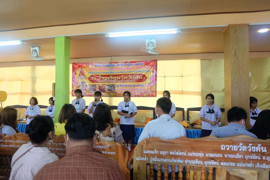 วันที่ 22 พฤษภาคม 2565 คณะกรรมการสถานศึกษา คณะกรรมการที่ปรึกษา นักเรียน ผู้ปกครองและชุมชน ได้ร่วมทอดผ้าป่าเพื่อการศึกษา เพื่อจัดหาทุนปรับปรุงโรงอาหาร พัฒนาอาคารสถานที่ และพัฒนาการศึกษาของโรงเรียน อันจะส่งผลต่อการจัดการศึกษาให้นักเรียนมีคุณภาพต่อไป โดยมีพระครูสุวรรณนพวงศ์ เจ้าอาวาสวัดวังคัน เป็นประธานฝ่ายสงฆ์ นายณัฐพล ทวีวัฒนพงศ์ นายกองค์การบริหารส่วนตำบลวังคัน เป็นประธานฝ่ายฆราวาส นายณธัชพงศ์ ตรัยคนันธรณ์ ผู้อำนวยการโรงเรียนวัดวังคัน คณะครู และบุคลากรทางการศึกษาทุกท่านให้การต้อนรับคณะทำบุญในครั้งนี้ ผู้บริหาร คณะครู บุคลากรทางการศึกษา และนักเรียนโรงเรียนวัดวังคัน ขอขอบพระคุณคณะผู้ใจบุญทุกท่านที่ร่วมทำบุญ เพื่อพัฒนาการศึกษาของโรงเรียนวัดวังคันมา ณ โอกาสนี้ S:0