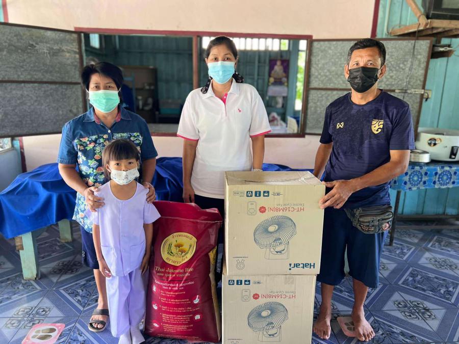 อาม่าเตียง ศรีพรมงาม ที่บริจาคพัดลม จำนวน 2 ตัว และข้าวสาร 1 กระสอบ