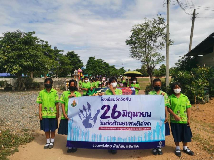 วันที่ 26 มิถุนายน 2566 นายณธัชพงศ์ ตรัยคนันธรณ์ ผู้อำนวยการโรงเรียนวัดวังคัน พร้อมด้วยคณะครูและนักเรียน จัดกิจกรรมต่อต้านยาเสพติด โดยได้กล่าวคำปฏิญาณและร่วมเดินขบวนรณรงค์ต่อต้านยาเสพติดภายในหมู่บ้าน เพื่อให้นักเรียนและประชาชนตระหนักถึงโทษของยาเสพติด ไม่ข้องเกี่ยวกับยาเสพติด และร่วมป้องกัน แก้ไข เฝ้าระวัง ปัญหายาเสพติด ทั้งภายในโรงเรียนและชุมชน เป็นพลเมืองที่ดีในสังคมต่อไป S:0