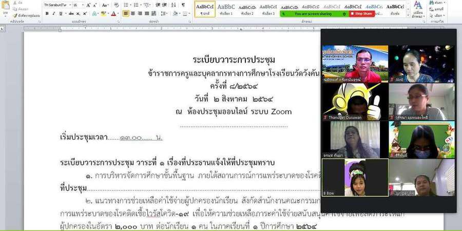 วันที่ 2 สิงหาคม 2564 นายณธัชพงศ์ ตรัยคนันธรณ์ ผู้อำนวยการโรงเรียนวัดวังคัน ประชุมคณะครูผ่านโปรแกรม ZOOM เพื่อร่วมกันวางแผนและพัฒนาการดำเนินการจัดการเรียนการสอนในรูปแบบ On-Hand และ On-Line ของโรงเรียน การแจกเงินค่าอาหารกลางวันให้กับนักเรียน แจกนม และการจัดสรรเงินอุดหนุนนักเรียนยากจนพิเศษแบบมีเงื่อนไข (นักเรียนทุนเสมอภาค) สำรวจข้อมูลนักเรียนเพื่อหาแนวทางการช่วยเหลือค่าใช้จ่ายให้กับผู้ปกครองในสถานการณ์แพร่ระบาดของไวรัสโคโรน่า 2019 S:0
