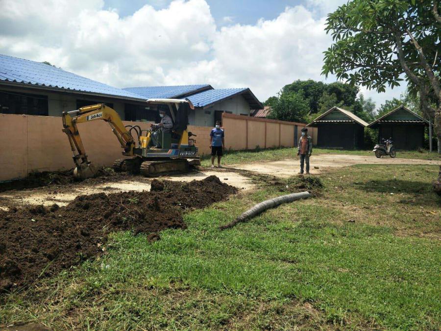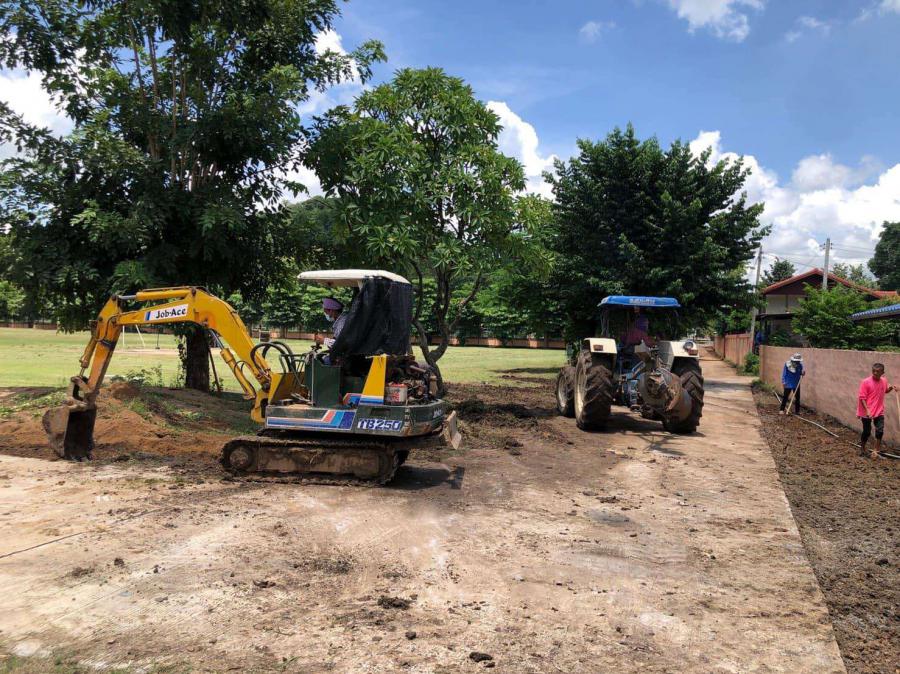 วันที่ 1 กันยายน 2564 ขอขอบคุณผู้ช่วยบัวพันธ์ รักษาผล (ผู้ช่วยพัน) และขอขอบคุณผู้ช่วยจตุรงค์ เจริญชัยสิริสุข (ผู้ช่วยบื่อ) ใช้รถแบคโฮและรถแทรกเตอร์ปรับพื้นที่บริเวณขอบถนนเพื่อเตรียมพื้นที่เทคอนกรีตภายในบริเวณโรงเรียน S:0
